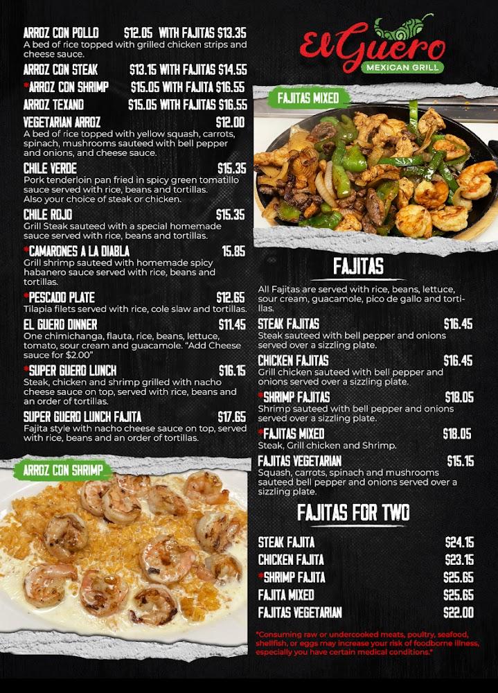 El Guero offers a diverse menu that appeals to many. Tacos, fajitas, and quesadillas highlight the Tex-Mex focus, complemented by traditional drinks like aguas frescas. Many dishes can be enjoyed as shareable portions.